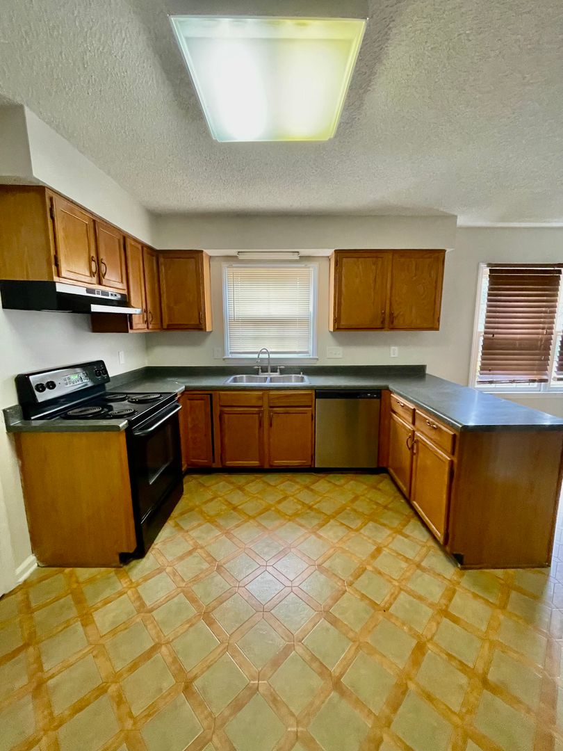Kitchen with fridge stove and dishwasher
